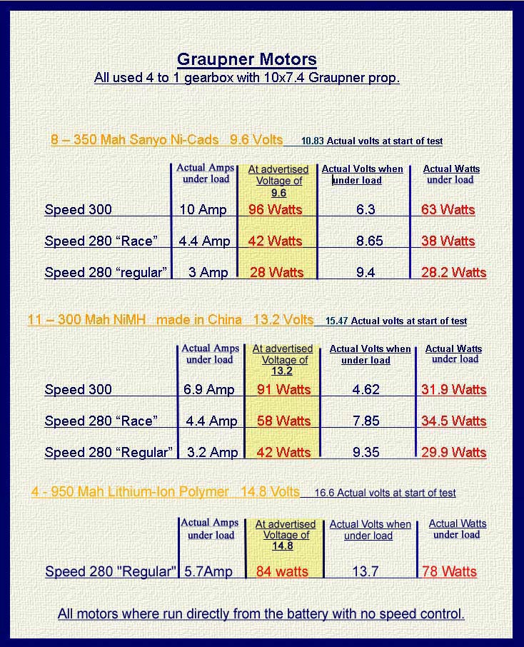Motor - Battery test on Graupner Speed 280, 280 "Race" and Speed 300 motors.